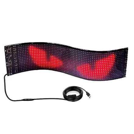 پنل منعطف LED برای خودرو Flexible LED Car Screen کنترل برنامه برنامه را در تلفن همراه خود دانلود کنید و پنل ماتریس LED را از طریق بلوتوث وصل کنید. پشتیبانی از فرمت های چندگانه متریال و صفحه نمایش پیمایش هوشمند. شما می توانید متن، الگو و انیمیشن را آزادانه طراحی و ویرایش کنید. طراحی انعطاف پذیر از FPCB استفاده می کند که نازک و سبک است، می توان آن را به آرامی خم کرد و در اطراف سطح کاملاً خم شد. و رزین کلوئیدی روی سطح پنل ماتریس LED اضافه می شود. بنابراین برای جلوگیری از آسیب های ناشی از الکتریسیته ساکن یا اشیاء. USB Power طراحی پورت USB قابل حمل تر و ایمن تر و با کابل 14.7 است. لطفاً از آداپتور AC/DC 5V/2A یا پاوربانک (یا همچنین از فندک اتومبیل 5V/2A در حین استفاده در خودرو استفاده کنید. نصب آسان از نوار چسب 3 متری استفاده کنید که می توان آن را به دیوار یا اشیاء دیگر به دلخواه وصل کرد.